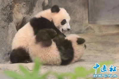 港產大熊貓龍鳳胎“家姐”與“細佬”活潑可愛