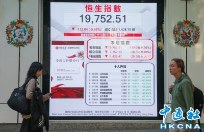 香港恒生指數跌112點 報19752點