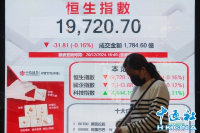 香港恒生指數跌31.81點 報19720.70點