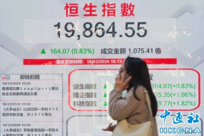 香港恒生指數漲164.07點 報19864.55點