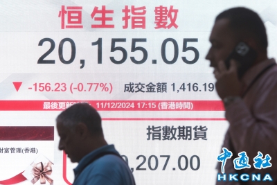 香港恒生指數跌156.23點 報20155.05點