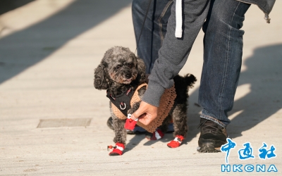 市民為狗狗換上禦寒衣物