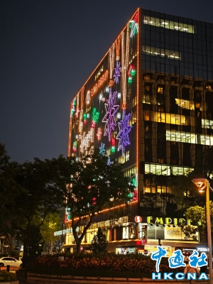 香港利東街飄雪迎聖誕 8米幻彩樹點亮中庭
