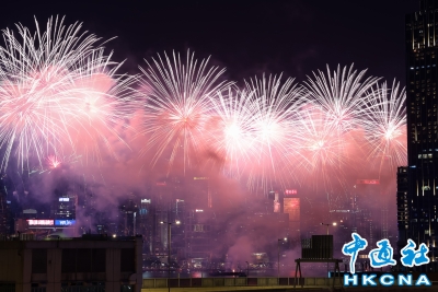 香港維港綻放逾三萬枚煙花賀國慶