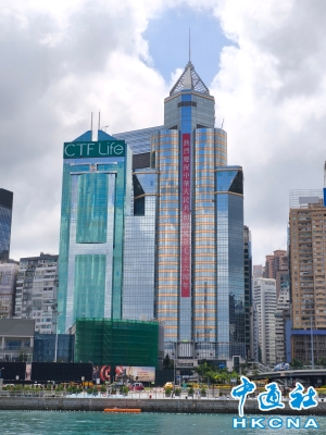 國慶節將至香港商廈慶祝條幅高掛