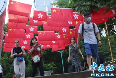 香港灣仔街頭國慶氛圍濃厚