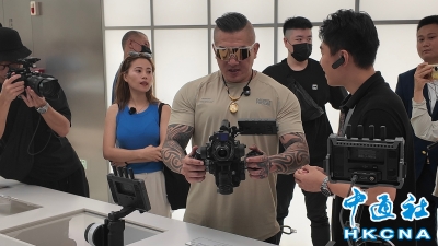 台灣網紅“館長”觀看燈光秀後接受採訪