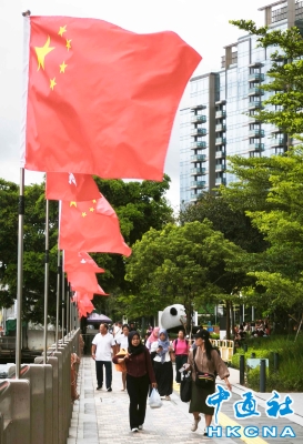 香港慶祝回歸祖國28周年 街頭彩旗飛揚