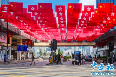 香港街頭慶回歸氣氛濃