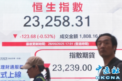 香港恒生指數跌123.68點 報23258.31點