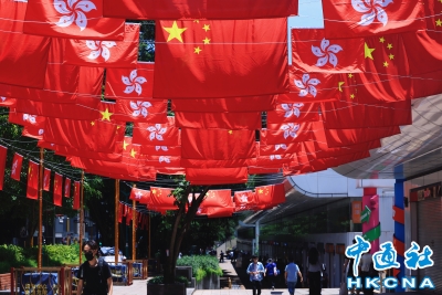 7月1日香港回歸紀念日臨近,香港特區政府保安局局長鄧炳強昨日(6月29日)在微博發文,曬出自己和辦公室的“旗海”合影,慶祝香港回歸26周年,并稱:今年有別以往,在辦公室也有“旗海”!