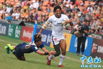 “香港國際七人欖球賽”4月1日在大球場舉行第二日比賽,截至下午4時半,超過2.4萬人次入場。特區政府政務司副司長卓永興、財政司副司長黃偉綸再次相約到場觀賽,與市民一同熱烈喝采,為港隊打氣。