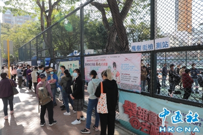 香港與內地實施首階段免檢疫通關後,前往內地除需預約口岸外,還需要持48小時內的核酸檢測陰性報告。農曆新年將至,不少港人計劃北上返鄉過年,近期香港多個檢測站出現排隊人龍,其中深水埗楓樹街遊樂場球場檢測站昨晚(18日)更出現“逼爆”情況。