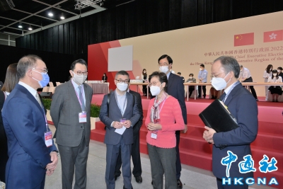 香港中通社5月7日電 香港特區第六屆行政長官選舉將於8日舉行,特首林鄭月娥7日上午視察位於香港會議展覽中心的選舉主投票站及中央點票站,了解籌備工作的最後階段,包括主投票站設置、防疫措施、保安安排及點票流程,並為在場參與選舉演練的工作人員打氣。