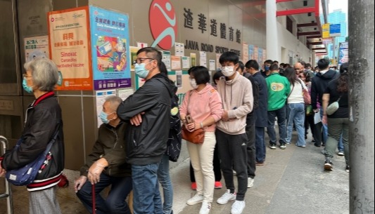 香港新一波疫情一觸即發 市民擠滿疫苗接種中心