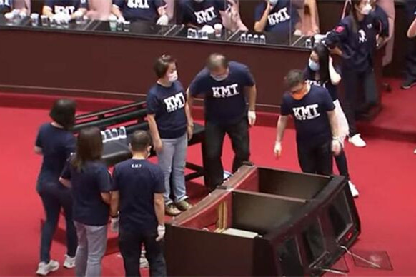 台灣省“行政院長”蘇貞昌被潑水後,藍綠今日(10月1日)在“立法院”又上演攻防,蘇貞昌的發言台被推翻。 台灣“聯合新聞網”報道截圖 “聯合新聞網”“中時新聞網”等台媒消息,因不滿“3+11(居家檢疫3日,自主健康管理11日)”項目報告內容,加上周二爆發議事程序爭議,國民黨團今日(1日)再度抵制“行政院長”蘇貞昌施政總質詢,動員占領“立法院議場”發言台及官員席。 “藍委”掀翻發言台 報道稱,今日上...