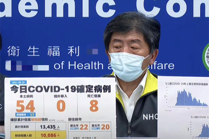台灣新增54例新冠肺炎本土確診病例,新增8例死亡病例