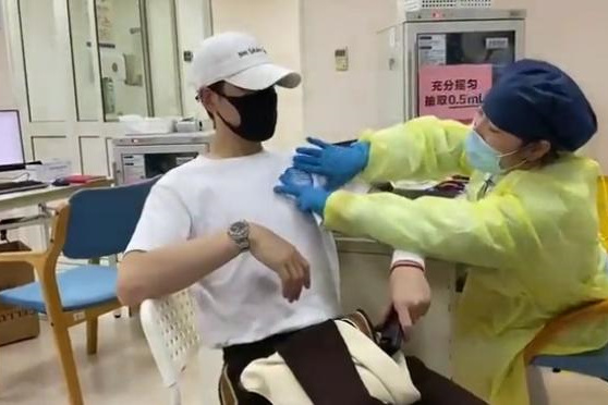 在上海同仁醫院,中國台灣藝人蕭敬騰接種第二針新冠疫苗
