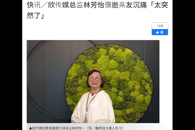 台媒體人疑因感染新冠去世,兩周前大贊台灣防疫“強大”