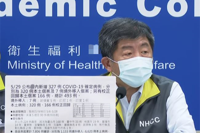 台灣地區流行疫情指揮中心今日(5月29日)公布,台灣新增327例新冠肺炎確診病例,分別為320例本土病例及7例境外輸入病例,另有所謂“校正回歸”本土病例166例,總計493例(其中本土病例486例)。確診病例中新增21例死亡。 指揮中心表示,新增之320例本土病例,為169例男性、151例女性,年齡介於未滿5歲至90多歲,發病日介於今年5月7日至5月28日。另“校正回歸”病例166例中,為90例男性、76例女性...