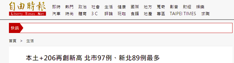 台灣單日新增206例本土新冠肺炎確診病例
