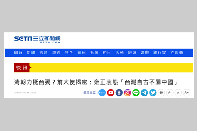 為了證明“台獨”理論,雍正又被“台獨”團體硬扯出來……