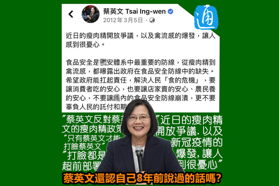 香港新聞網1月6日電 “近日的瘦肉精開放爭議,以及禽流感的爆發,讓人感到很憂心……希望政府能扛起責任,解決人民‘食的危機’,要讓消費者吃的安心,也要讓店家賣的安心、農民養的安心……不要辜負人民的托付和期待。”近日,蔡英文一篇發布於2012年3月5日的臉書帖文被扒出。 從八年前“心系百姓”的反瘦肉精鬥士到今天硬吞萊豬(含瘦肉精的美豬)的島內主事者,蔡英文前後言行反差之巨大,讓不少前來原帖“觀光打卡”的網友感嘆道:...