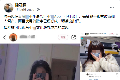 香港新聞網2月2日電 近日,有人發現台灣島內的一個新趨勢:台灣中學生不僅愛用大陸的應用程序,還“入鄉隨俗”用起了簡體字。有“台獨”分子發現這一趨勢後相當傻眼,感嘆“時代變了!” 近日,有“台獨”分子在臉書上發布了兩名島內中學生在大陸應用程序上的自拍照,並寫道:原來現在台灣中學生最流行大陸APP“小紅書”,每篇幾乎都有破百個人留言,而且使用簡體字已經變成一種潮流指標,“這應該可以視為中國文化統戰成果的展現”,他感...