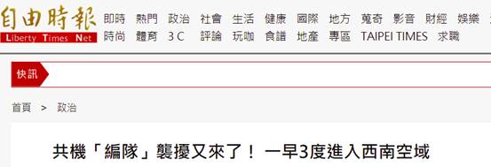 綠媒吐槽:“共機編隊”又來,今早3分鐘內三度進入台西南空域