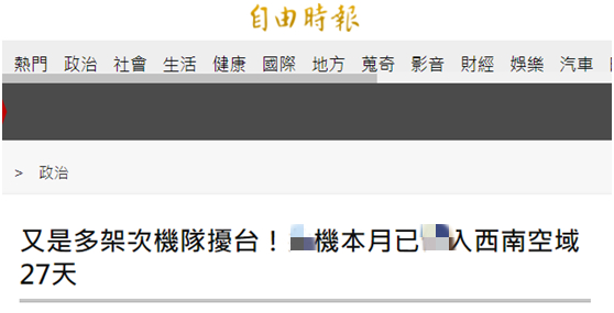 綠媒炒作:“共機”今天上午10分鐘內3度進入台灣西南空域