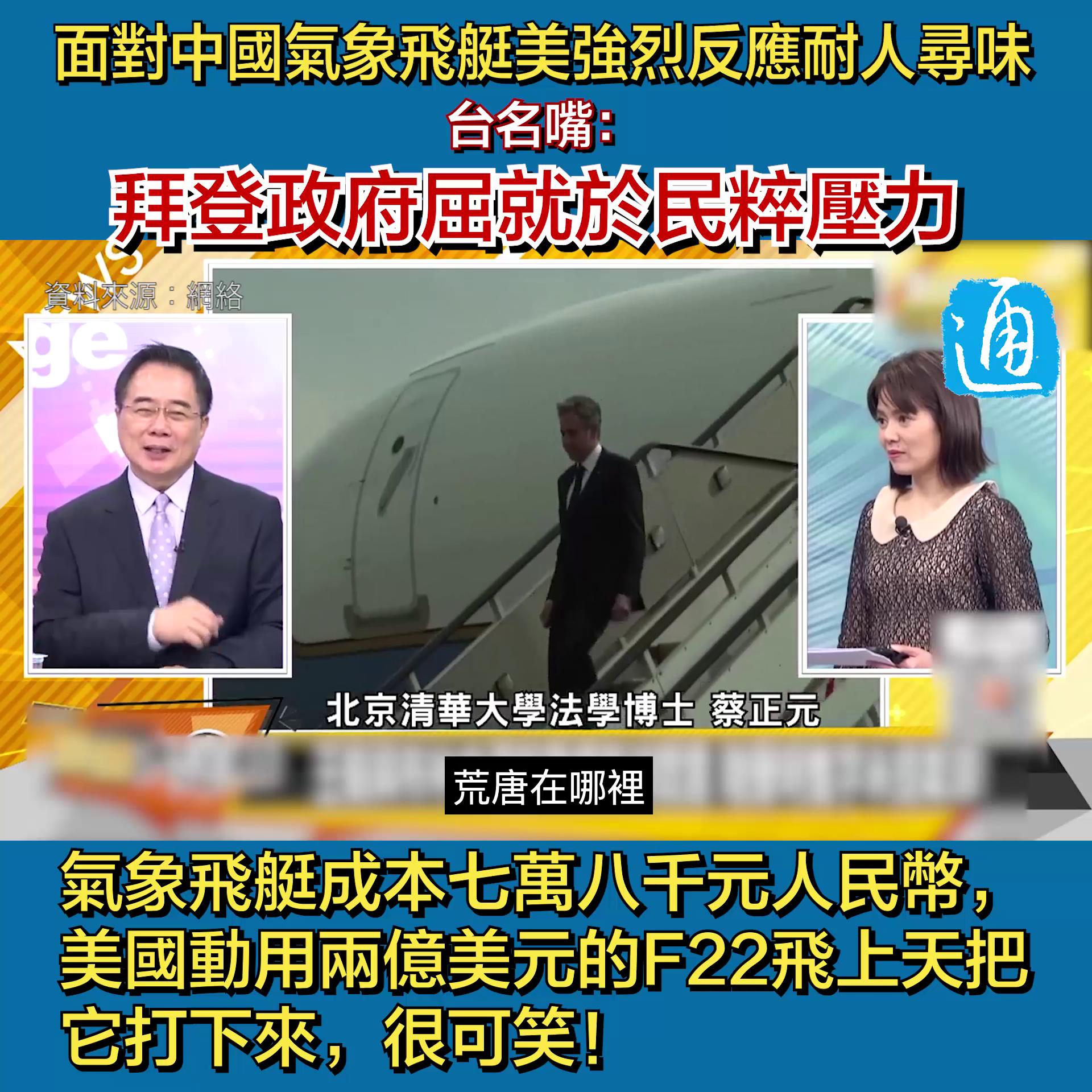 台名嘴吐槽:美國動用2億美元戰鬥機擊落中國飛艇,荒唐!