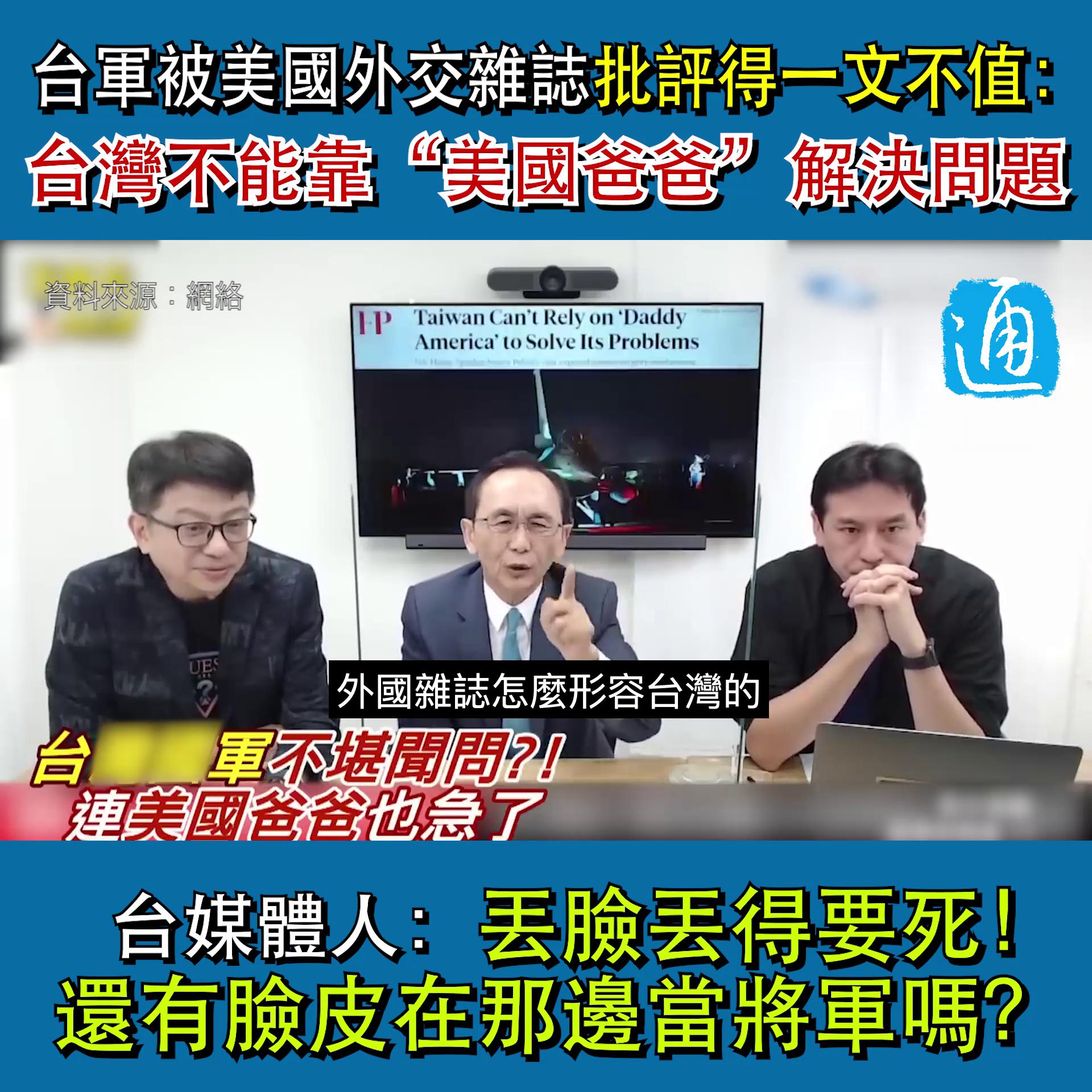 美媒直言台灣不能靠“美國老爸”解決問題 台媒體人:丟臉死了!