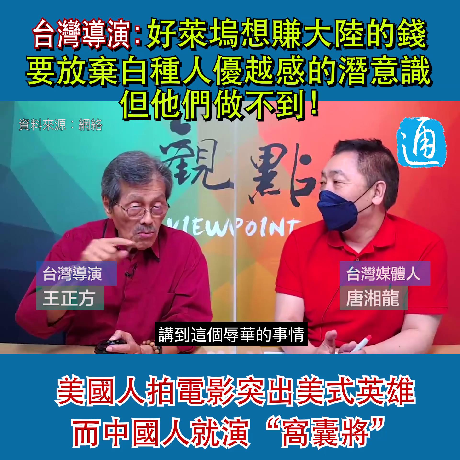 近年,部分好萊塢電影不獲中國大陸引進,其中一個原因或與電影中的 “辱華”情節有關。對此,台灣導演王正方近日在一檔節目指出,從頭到尾美國社會都是排華、輕視華人,美國人長期以來都有身為白種人的優越感。“我來管電影(引進)的話,對亞洲人、對中國人有任何歧視的概念,我也覺得不妥。”