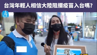 近日,有島內網絡節目進行街訪,詢問年輕人是否相信大陸有阻攔台灣進口美國和德國的疫苗?