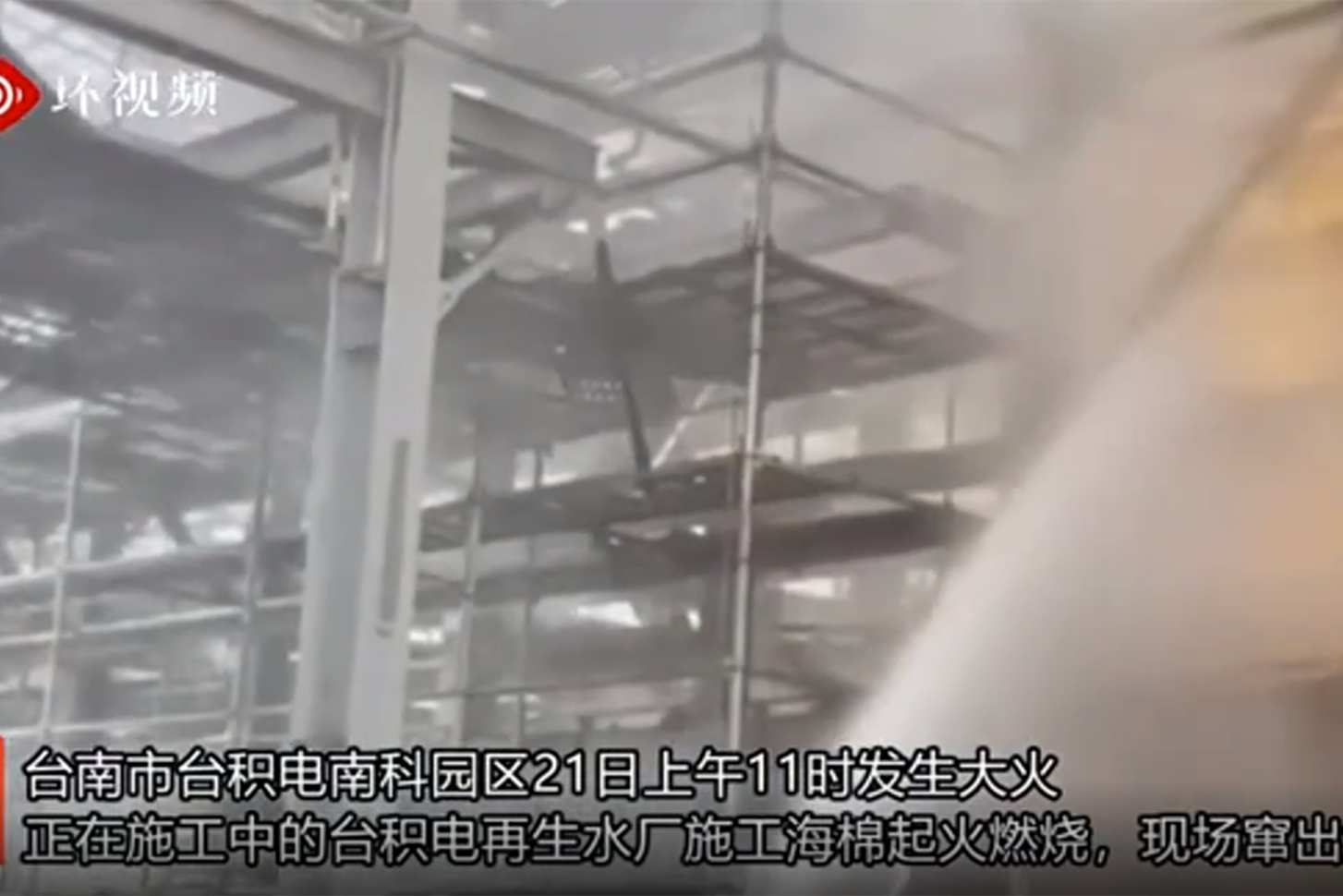 據台灣“中時新聞網”消息,台南市台積電南科園區今天(21日)上午11時發生大火,正在施工中的台積電再生水廠施工海棉起火燃燒,現場竄出大量濃煙,台南市消防局派出21輛救援車輛和37人前往撲救,有2名受困工人被救出,廠區緊急疏散270人。 台灣“中時新聞網”報道截圖 據報道,消防人員在現場滅火時發現起火處所旁下水池有2名施工工人受困,樓梯受火勢影響無法逃生,已由消防人員架梯將人救出,兩人意識清醒,沒有受傷不需...