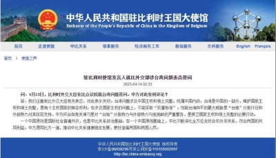 中國駐比利時使館13日回應比利時外交部涉台灣問題表態,強調維護國家主權和領土完整是每個主權國家的神聖權利,在涉及國家主權的問題上不能採取“雙重標準”。