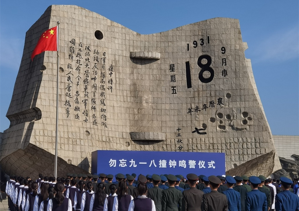 9月18日上午,勿忘九一八撞鐘鳴警儀式在遼寧沈陽“九一八”歷史博物館殘歷碑前廣場舉行。勿忘國恥,警鐘長鳴!