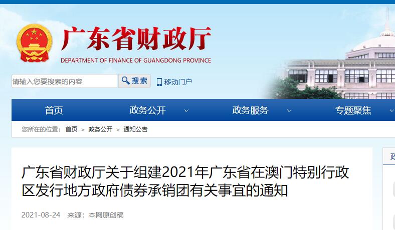 8月24日,廣東省財政廳發佈通知稱,為深入貫徹落實黨中央、國務院推進粵港澳大灣區建設的有關決策部署,廣東省政府計劃2021年在澳門特別行政區發行人民幣地方政府債券。為做好有關工作,廣東省財政廳計劃組建2021年廣東省在澳門特別行政區發行地方政府債券承銷團。 與此同時,深圳市財政局發佈通知稱,為貫徹落實黨中央、國務院關於深圳建設中國特色社會主義先行示範區的決策部署,2021年深圳將在香港發行離岸人民幣地方政府債券...