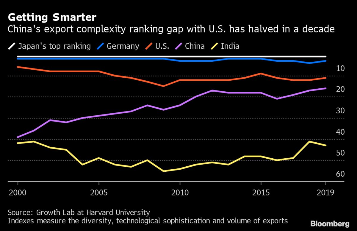 據彭博社當地時間8月3日消息,哈佛大學發展實驗室(Growth Lab)研究顯示,美國政府對中國發起貿易戰期間,中國出口的技術水平有所提高。 以各國2019年出口復雜度(出口產品的先進性與復雜性)為判斷標準,中國在全球排名第16位,自2018年貿易爭端爆發以來上升了3位。該排名還預測中國經濟在未來10年的增長速度將超過印度。 發展實驗室高級經理蒂姆·切斯頓(Tim Cheston)表示,中國採取了一項巧妙的舉...