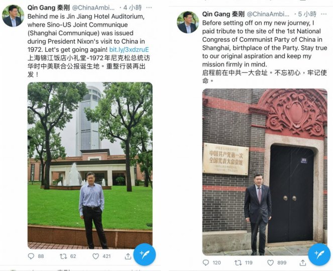 香港新聞網7月30日電 據大公文匯全媒體報道,中美關係緊張之際,中國新任駐美國大使秦剛周三(28日)抵達美國履新。他在社交媒體發出在上海啟程前的兩張照片,包括在中共一大會址前拍照,表明“不忘初心,牢記使命。” 秦剛發布了兩張照片 ,意有所指,一張是“啓程前在中共一大會址。不忘初心,牢記使命。”另一張是“上海錦江飯店小禮堂-1972年尼克松總統訪華時中美聯合公報誕生地。重整行裝再出發!” 秦剛周三抵達美國發表講...