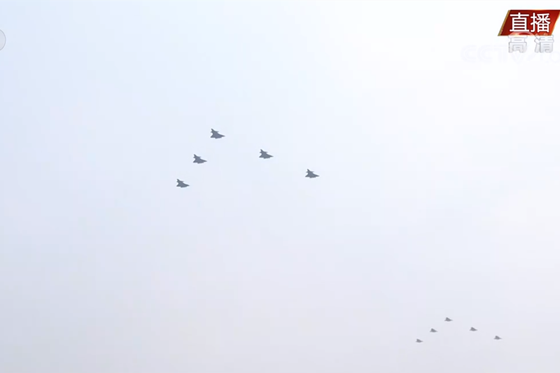 大規模的殲-20梯隊飛越天安門廣場 尚屬首次