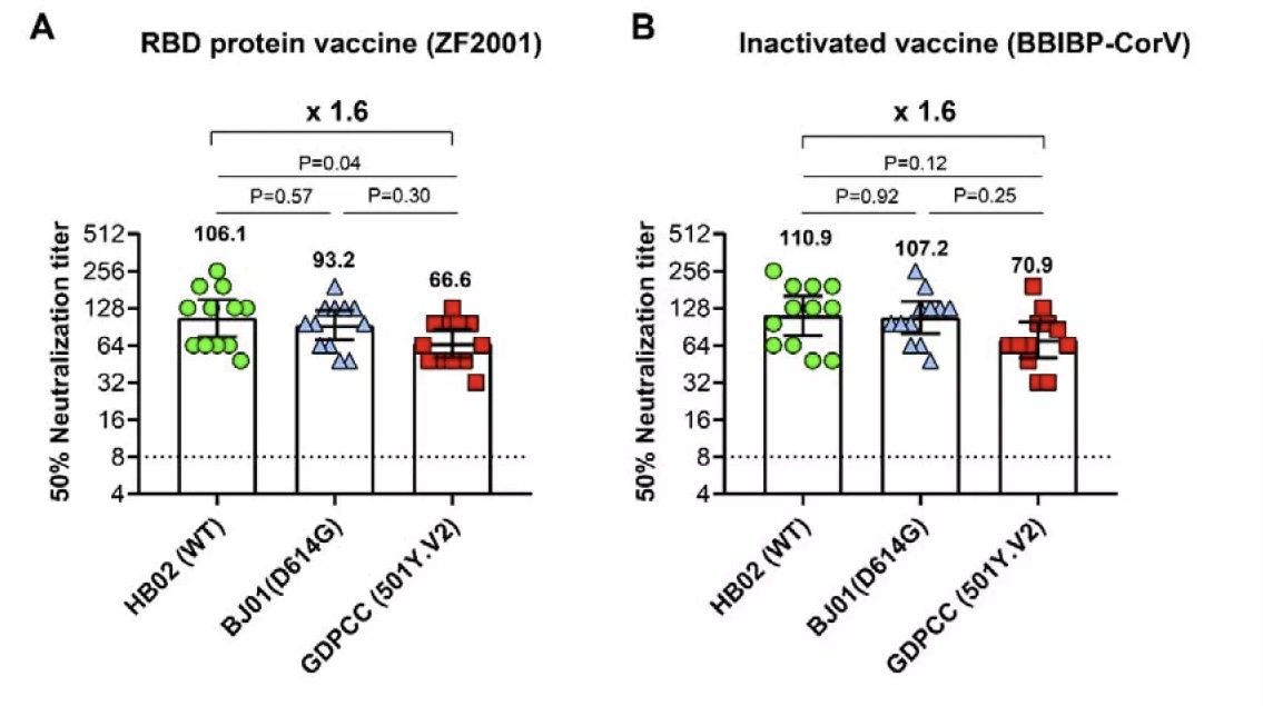 中國疾控中心高福等科研人員日前在國際知名預印本網站(bioRxiv)發布論文,研究已附條件上市的國產滅活新冠疫苗(國藥中生北京新冠滅活疫苗)和正在開展3期臨床試驗的國產重組蛋白亞單位新冠疫苗(智飛生物與中國科學院聯合開發的重組蛋白亞單位新冠疫苗)對南非新變種(SARS-CoV-2 variant of concern (VOC)501Y.V2)的保護效果。研究結果顯示,上述兩種疫苗接種者血清對南非新變種的中和效果...