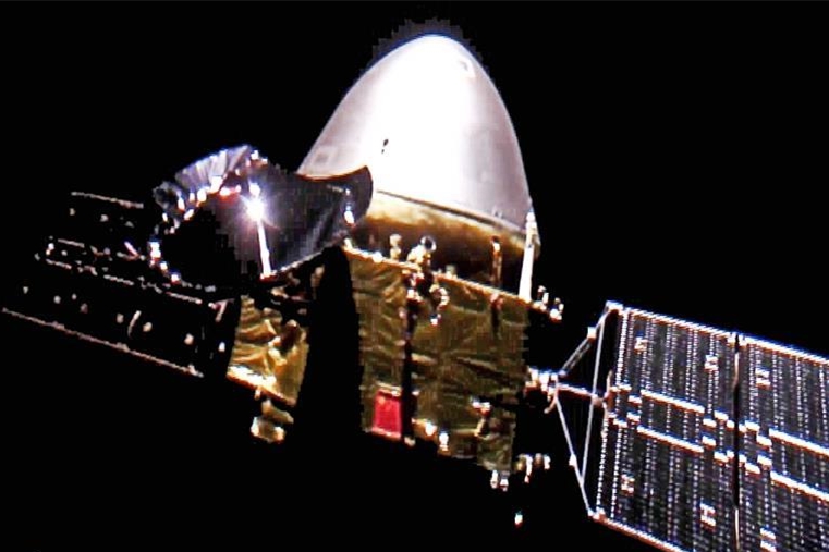香港中通社2月3日電 中國首次火星探測任務“天問一號”探測器總飛行里程超過4.5億公里,距地球約1.7億公里。預計2月10日左右,也就是農歷除夕前後,“天問一號”將進行近火制動(俗稱“剎車”),開啟環繞火星之旅。 “天問一號”探測器於2020年7月23日在中國文昌航天發射場由長征五號運載火箭發射升空,開啟奔向火星的征程,目前已成功完成地月合照、探測器“自拍”、三次中途修正、深空機動、載荷自檢等工作。 “天問一...