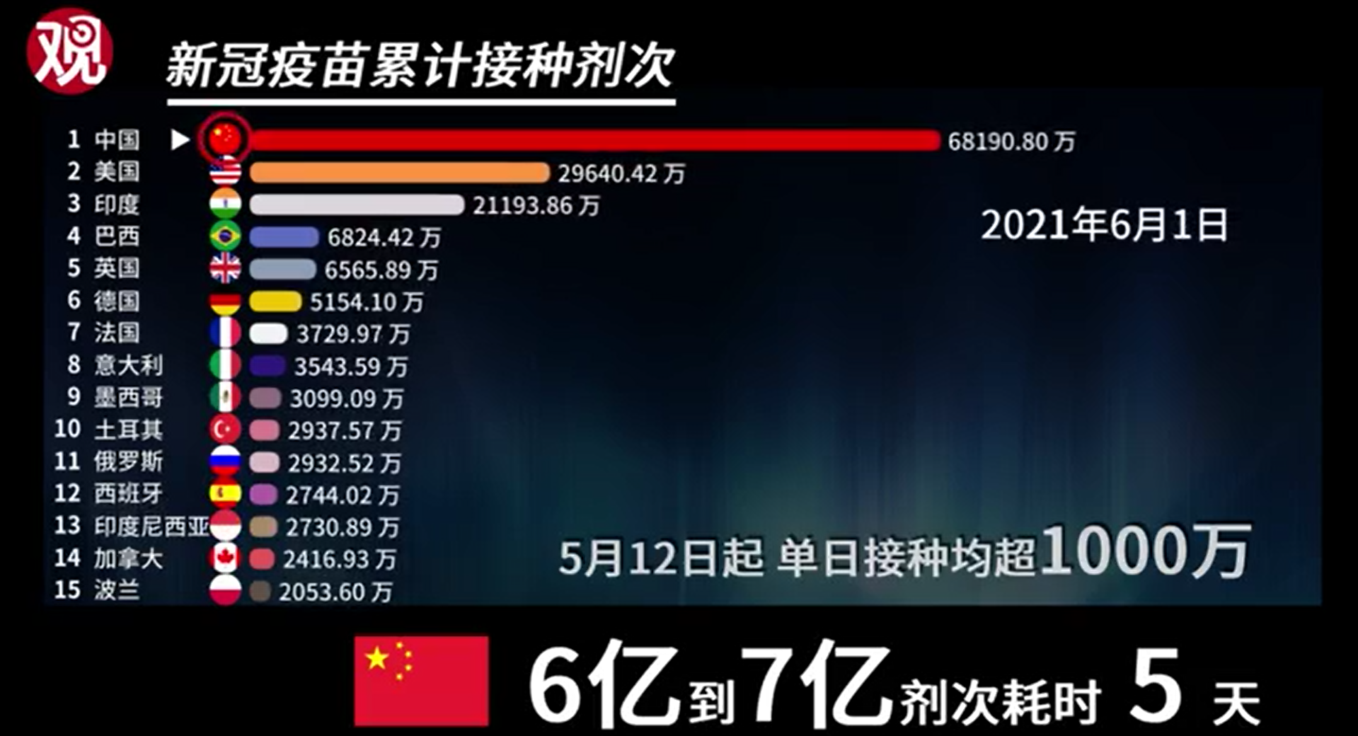 據國家衛健委網站6月3日消息,截至2021年6月2日,31個省(自治區、直轄市)和新疆生產建設兵團累計報告接種新冠病毒疫苗70482.6萬劑次。 從2020年12月15日中國正式開展重點人群接種工作以來,新冠疫苗在各地的接種速度不斷提高,屢屢創下紀錄。4月26日,中國的疫苗接種劑次也首次趕超美國,位居世界第一。 2020年12月15日中國正式開展重點人群接種工作,新冠疫苗在各地接種不斷提速。進入今年3月,新冠...