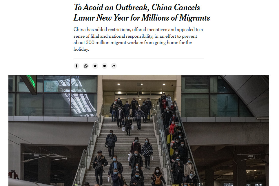 紐約時報:太殘酷了,中國人連回家過年的自由都沒有!