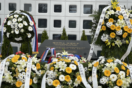 中國駐塞爾維亞大使館在中國駐南聯盟被炸使館舊址前憑吊