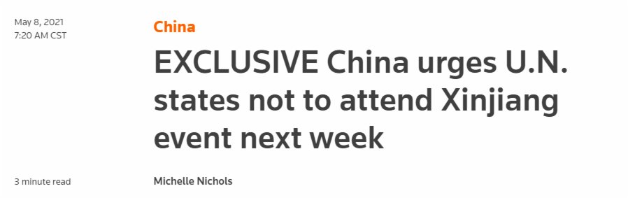 路透社根據5月7日看到的一份照會發布“獨家報道”稱,中國敦促聯合國成員國不要參加美國、英國和德國計劃於下周舉行的涉疆問題活動。 據環球時報援引路透社報道,該活動組織者還包括其他幾個歐洲國家和澳大利亞、加拿大。 據報道,中方在照會中指控這些國家“利用人權問題作為政治工具,干涉中國內政,比如涉疆事務,製造分裂和動盪,擾亂中國發展”。 “他們痴迷於挑起與中國的對抗,”該份照會指出,“挑釁性事件只能導致更多的對抗。...