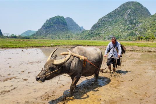 特稿:桂林農民牽牛當模特成為“網紅” 老外慕名來拍照