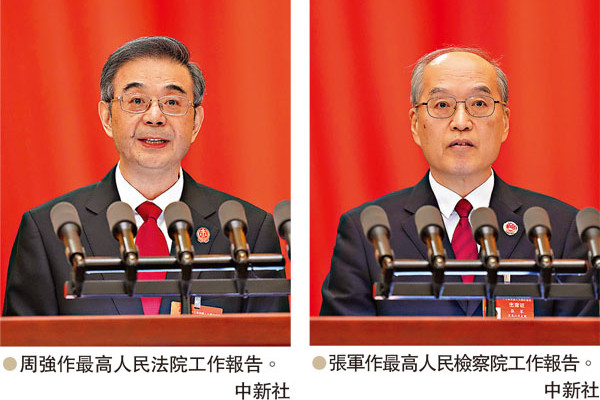 十三屆全國人大四次會議3月8日舉行第二次全體會議。最高人民法院院長周強和最高人民檢察院檢察長張軍分別向大會作工作報告,兩份報告均在顯要位置強調堅決維護國家安全。最高法報告指,嚴厲打擊境內外敵對勢力滲透、破壞、顛覆、分裂活動,依法嚴懲顛覆國家政權、煽動分裂國家等犯罪,堅決維護國家政治安全特別是政權安全、制度安全。最高檢報告強調,嚴厲打擊境內外敵對勢力滲透破壞活動,堅決貫徹香港特別行政區維護國家安全法。 周強在報告...