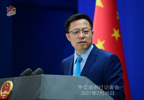 香港中通社2月25日電 針對近期一些西方國家在人權理事會第46屆高級別會議上借涉疆問題指責中國侵犯人權,中國外交部發言人趙立堅25日在記者會上列舉一系列數字和事實予以駁斥。他說,“種族滅絕的帽子還是留著他們自己戴吧。” 近期,一些西方國家在人權理事會第46屆高級別會議上借涉疆問題指責中國侵犯人權,中方代表也作出了批駁。 當日例行記者會上,媒體就此詢問趙立堅看法。趙說:造謠動動嘴,闢謠跑斷腿。所謂新疆存在“種族...